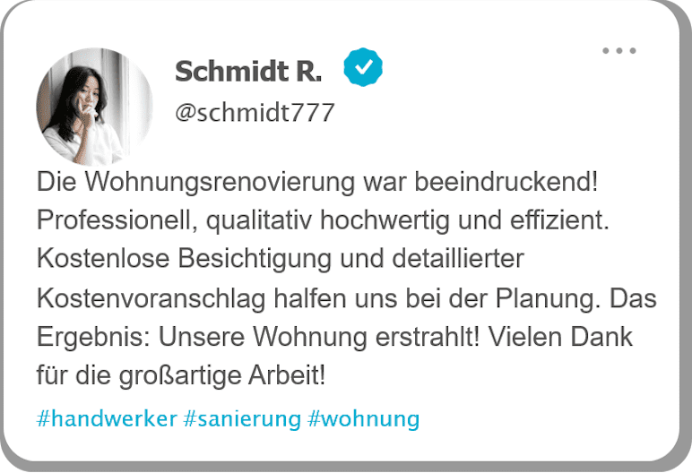 Frau Schmidts Bewertung und erfolgreich abgeschlossenes Sanierungsprojekt
